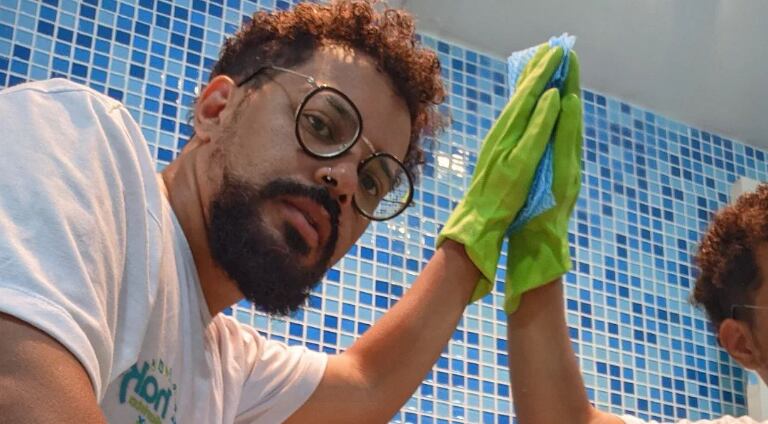 “Num primeiro momento, tive receio por ser homem, porque não acreditava que alguém me contrataria. Não conhecia esse mercado ainda. Mas divulguei, aí meus amigos me chamaram para fazer faxina, depois vieram os amigos dos amigos... Acabou que firmei os clientes”, disse ele, em entrevista ao portal UOL.