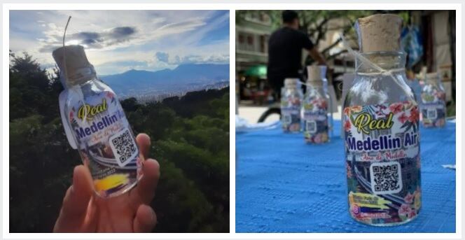 Classificando seu produto como algo “100% real e genuíno”, assim como o descreve na página em que anuncia as garrafas, o jovem diz que não se trata “do ar de qualquer lugar”, mas de montes da cidade como Tres Cruces, Nutibara e o Alto de Palmas.