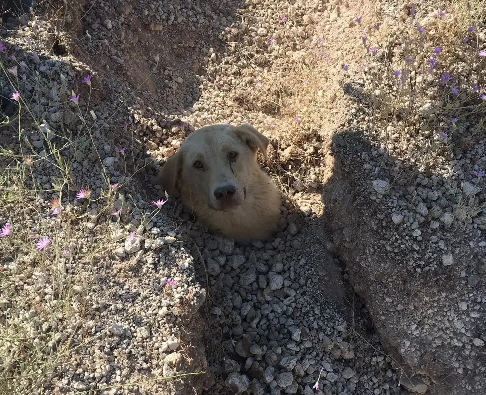 Soner começou a cavar para retirar a cachorra em questão da situação, mas não demorou a perceber outros sons de ganidos, embaixo da terra. Logo viu que se tratavam de filhotes, que estavam completamente soterrados.