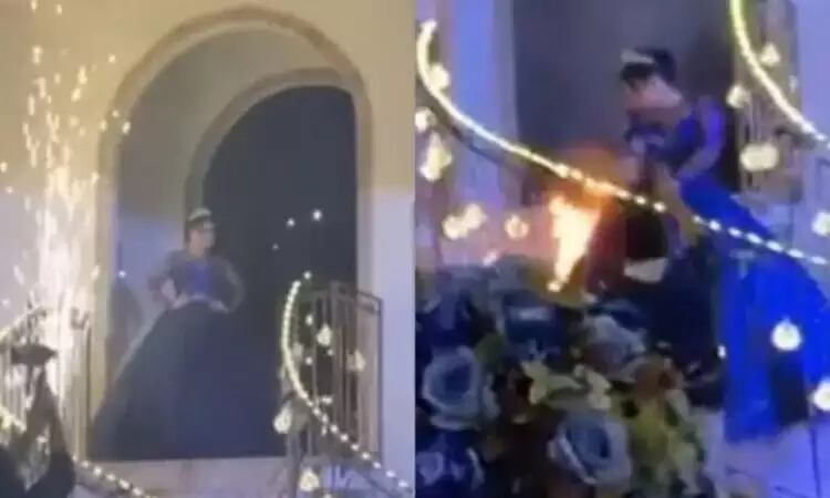 Os convidados se assustaram, mas a própria aniversariante demorou a perceber o que estava acontecendo. Apesar de seguir descendo as escadas sorridente, ela disse que não sentiu o vestido queimando.