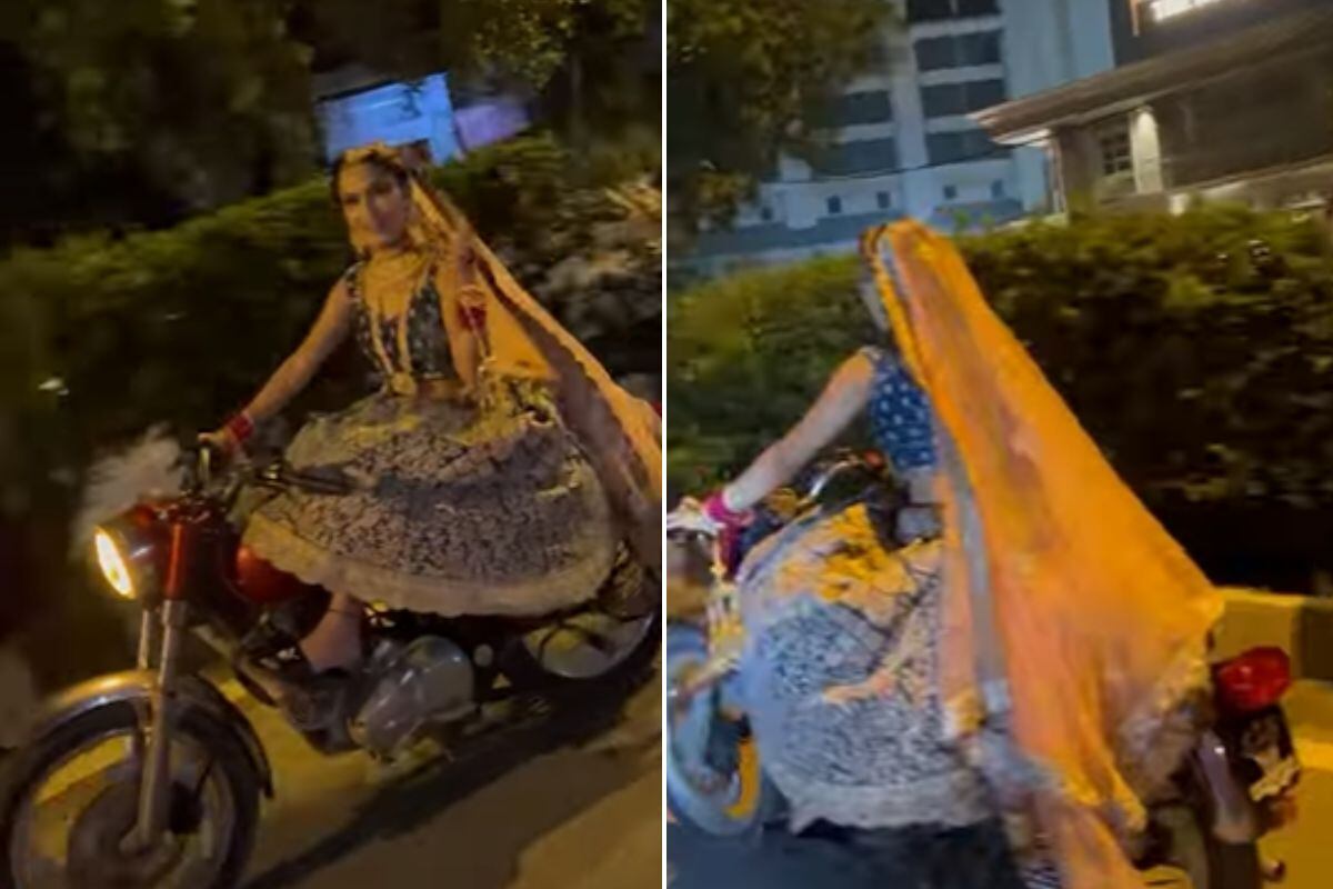 Vaishali Chaudhary foi filmada vestida de noiva pilotando uma moto para se encontrar com o noivo e seus convidados, de acordo com reportagem do “India Today” reproduzida pelo “Extra”.