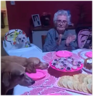 O vídeo do momento foi compartilhado pelo canal da neta, Vitória Abençoada, que disse que sua avó estava muito feliz vivendo em casa com seus cachorrinhos amados. E as imagens dos cachorros sentados à mesa esperando o momento para atacar as guloseimas já passaram de 200 mil visualizações no Instagram.