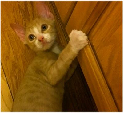 O gatinho era um filhote muito pequeno, de oito semanas, e estava completamente careca, como deveria ser para tal raça. “Parecia um Sphynx porque era muito, muito magro e seu rosto era muito angular”, disse a canadense.