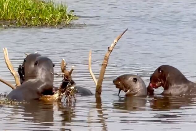 Vídeo flagra ariranhas famintas no Pantanal; espécie consegue estraçalhar peixe em questão de minutos
