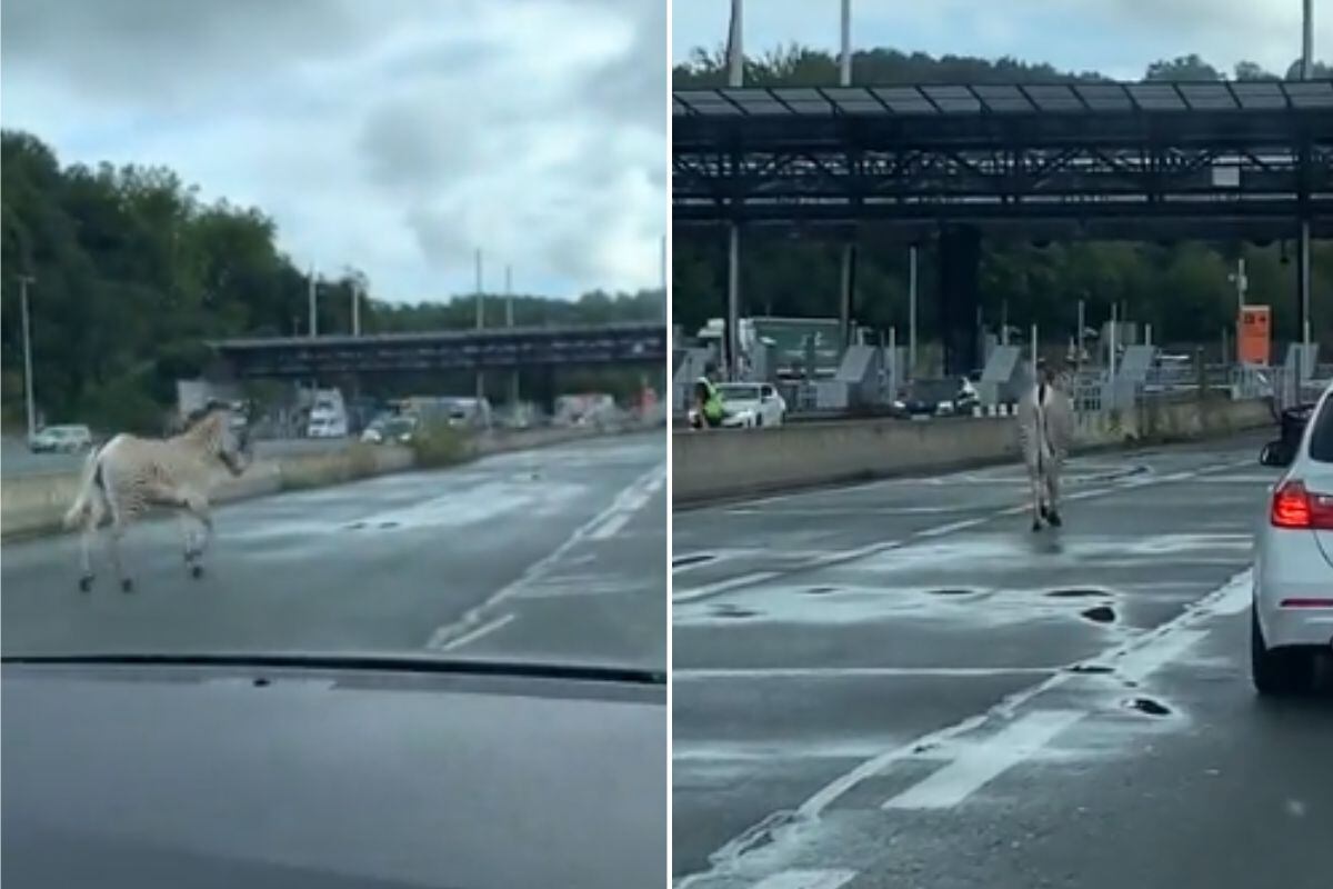 Quem se aproximava do pedágio em Biriatou, na rodovia que liga França à Espanha, se deparou com uma cena inusitada na última sexta-feira (26): uma zebra passeava tranquilamente pelo local.