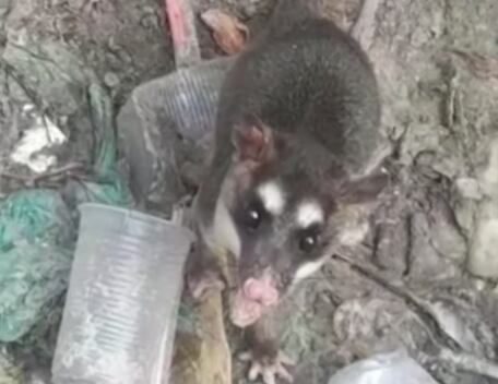 Vídeo flagra momento em que gambá armado com garfo enfrenta guarda marítimo; assista