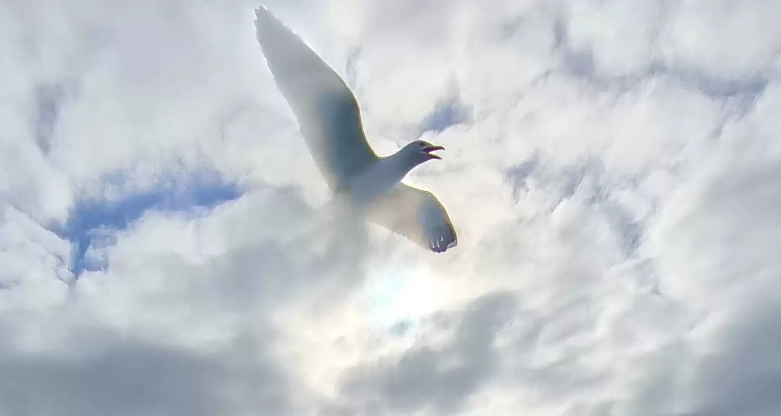 No centro da imagem, saindo das nuvens, uma gaivota gigante e etérea foi vista. Lang não imaginou como a ave foi parar naquele registro.