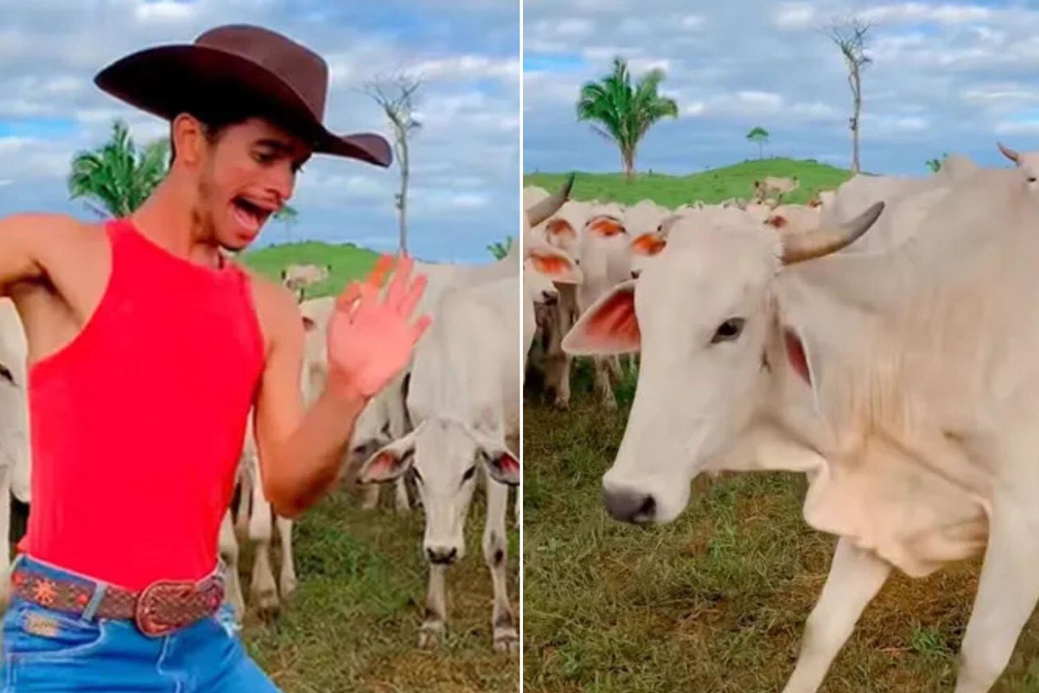 O zootecnista e influenciador digital Thawan Marttins viralizou ao postar um vídeo no qual aparece sendo “atacado” por uma vaca ao fazer uma dancinha nas redes sociais. Nas imagens, o acreano dança ao som da música “Pipoco”, de Ana Castela e Melody, quando um dos animais se irrita, parte para cima dele e acaba com a brincadeira (veja abaixo).