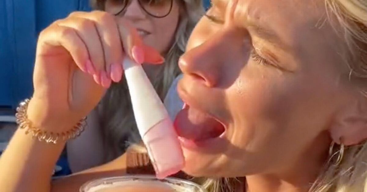 Sem saber da brincadeira, ela continuou a consumir a bebida gelada com o teste agitando como uma colher.