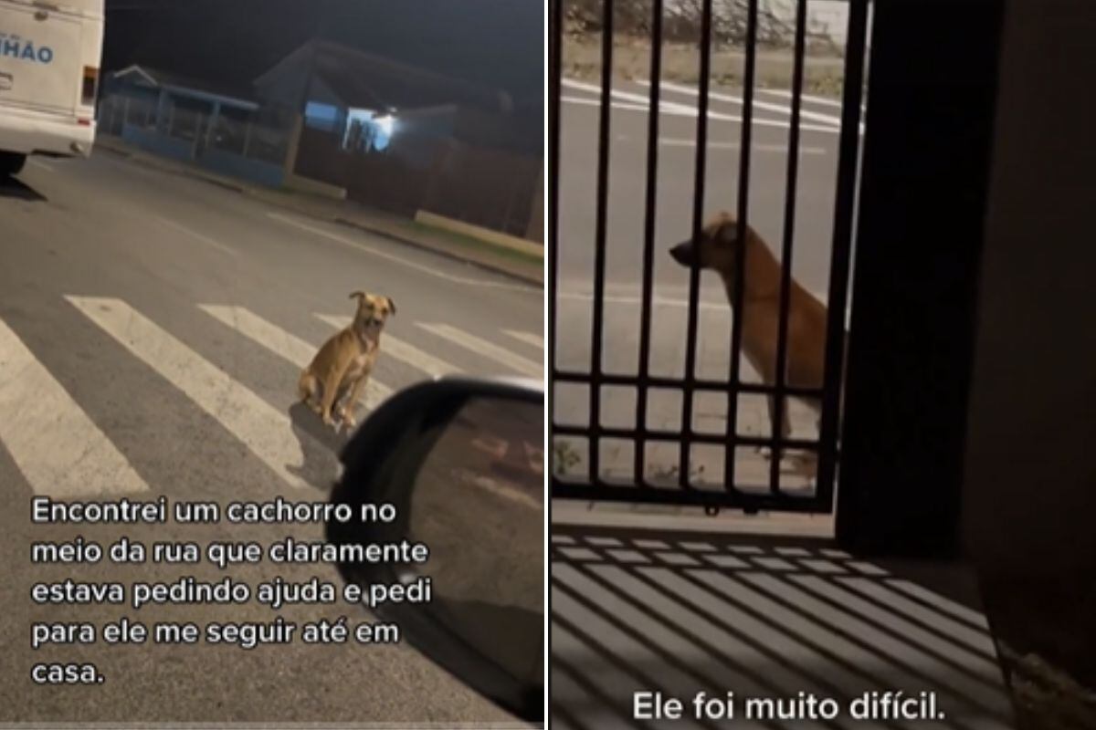 A usuária da rede social contou que encontrou o cachorro na rua e percebeu que ele estava perdido. Ela resolveu chamar sua atenção e pediu que ele a seguisse até sua casa enquanto ela dirigia. Ele, por sua vez, obedeceu.