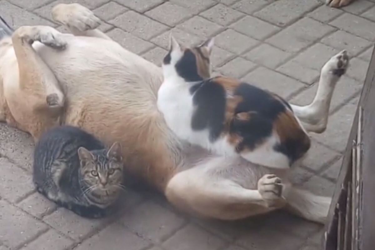 A gravação foi publicada no dia 7 deste mês pelo perfil @carlopuri1 e tem arrancado sorrisos de quem a assiste. Nela, o cão caramelo está de barriga para cima e parece não se incomodar nem um pouco com a presença do gato.