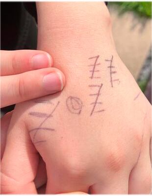 Ele notou que seu filho tinha várias marcas riscadas na mão em formas de flechas entrecortadas e o que julgou ser mais uma brincadeira inocente de adolescentes era na verdade algo terrível: era o número de vezes que ele havia sofrido bullying na escola somente nos últimos dois dias.