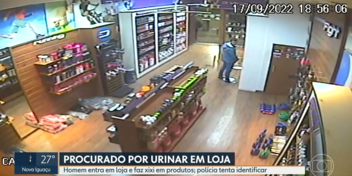 A polícia tenta identificar um homem que entrou em uma loja em Botafogo, no Rio de Janeiro e, tranquilamente, fez xixi em diversos itens em uma prateleira. O caso aconteceu na noite do último sábado (17).