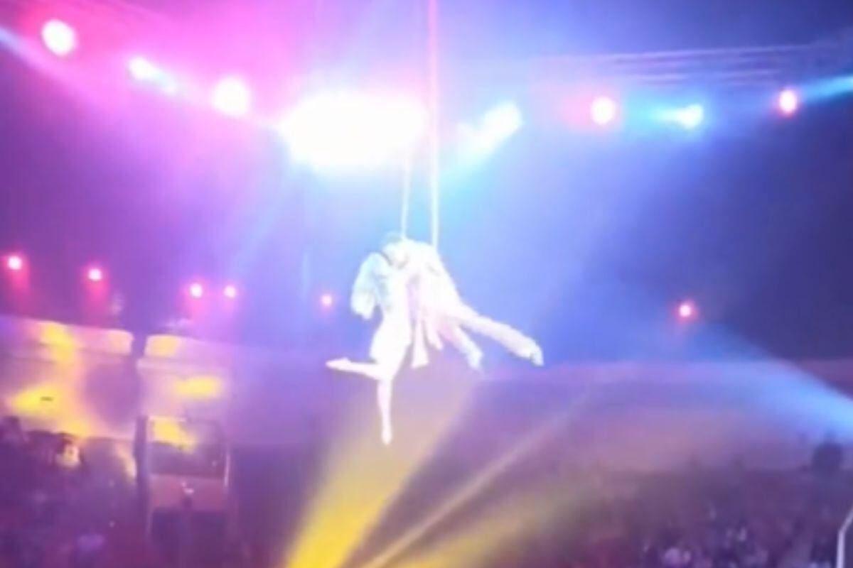 Uma trapezista sofreu um grave acidente no último domingo (18) durante uma apresentação do circo itinerante Filatov em Omsk, na Rússia.