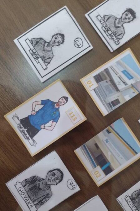 O álbum de figurinhas se divide em queimada masculino e feminino; vôlei masculino e feminino; e futsal masculino. Além disso, vale dizer que as ilustrações de cada figurinha foram feitas pelos estudantes.