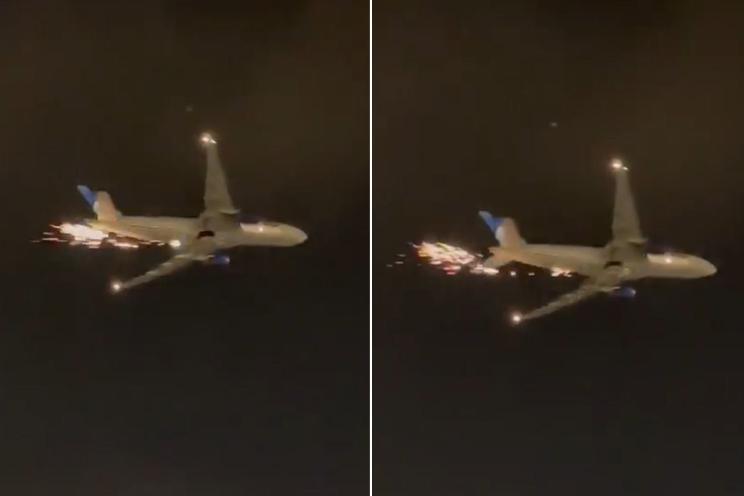 O vídeo que mostra as faíscas saindo da aeronave foram publicadas no Twitter ela empresa de segurança aérea Jet Airliner Crash Data Evaluation Center (JACDEC) na quinta-feira (22). Ele já foi visto mais de 241 mil vezes.