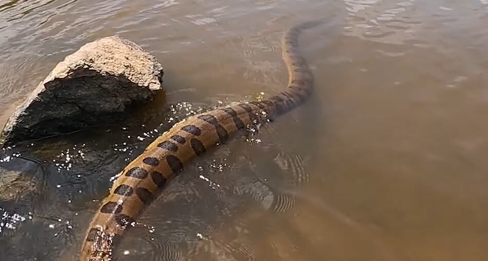 Confira o encontro com a cobra sucuri após 12 minutos de vídeo: