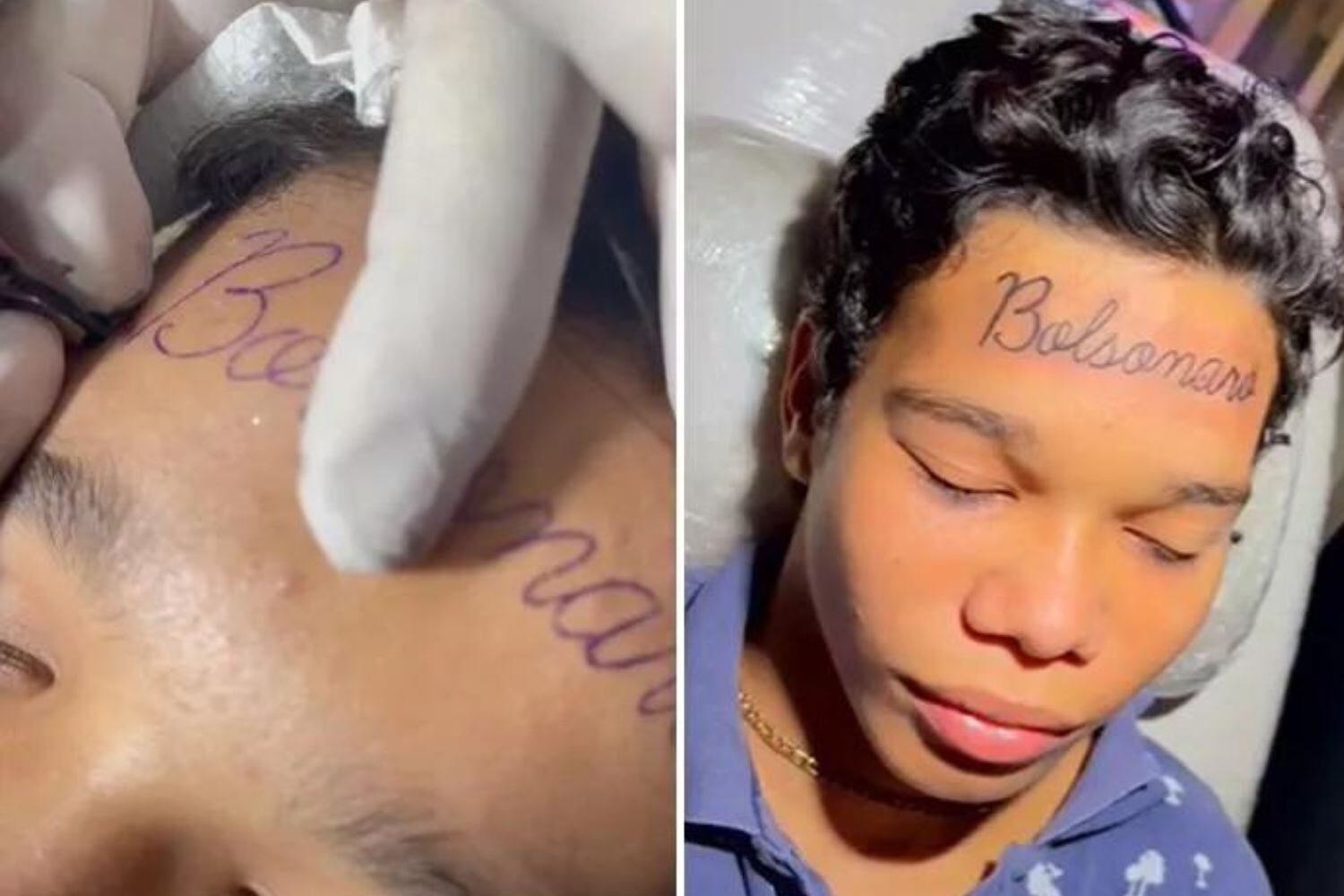 Uma tatuagem inusitada fez um adolescente de 17 anos viralizar nas redes sociais. O rapaz, identificado na web como João Carlos Silva, tatuou “Bolsonaro” na testa (veja abaixo). O registro foi divulgado pelo tatuador Leo Caberna, que tem um estúdio em Belford Roxo, na Baixada Fluminense, no Rio de Janeiro.