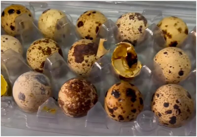 Em um dia extremamente quente na cidade, um gerente de um supermercado local disse que um funcionário o chamou após ouvir barulhos vindos de uma prateleira. Ao chegarem mais perto, notaram que o barulho era de uma embalagem com 30 ovos de codorna.
