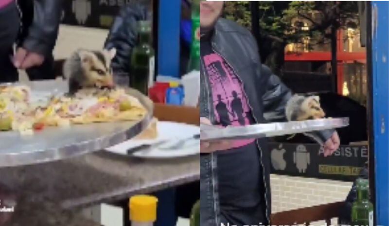 Durante os parabéns de um integrante da família, um gambá caiu em cima de uma pizza, surpreendendo a todos que estavam no local.