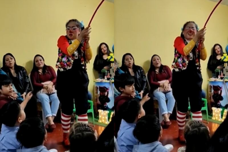 Com mais de 2,9 milhões de visualizações, a gravação mostra o momento em que uma mulher, fantasiada de palhaça, está animando uma festa infantil, passando uma espécie de corda vermelha próximo das crianças e dizendo que o objeto iria se “desipnotizar” caso encontrasse uma mãe que só foi ao local para comer ou se encontrasse um homem infiel.