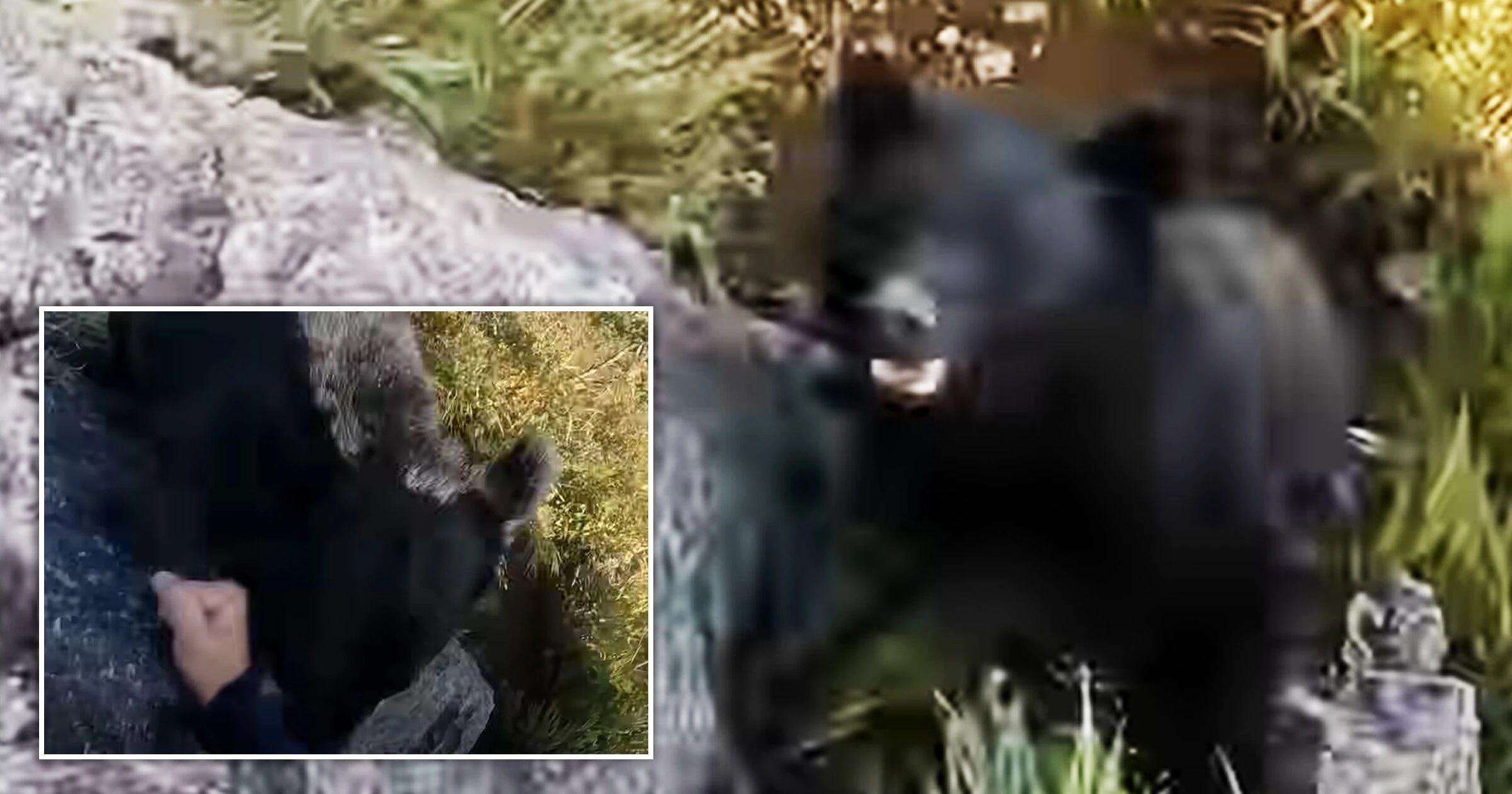 Momento aterrorizante em que alpinista briga com urso enquanto é forçado a lutar por sua vida e se agarrar em pedras
