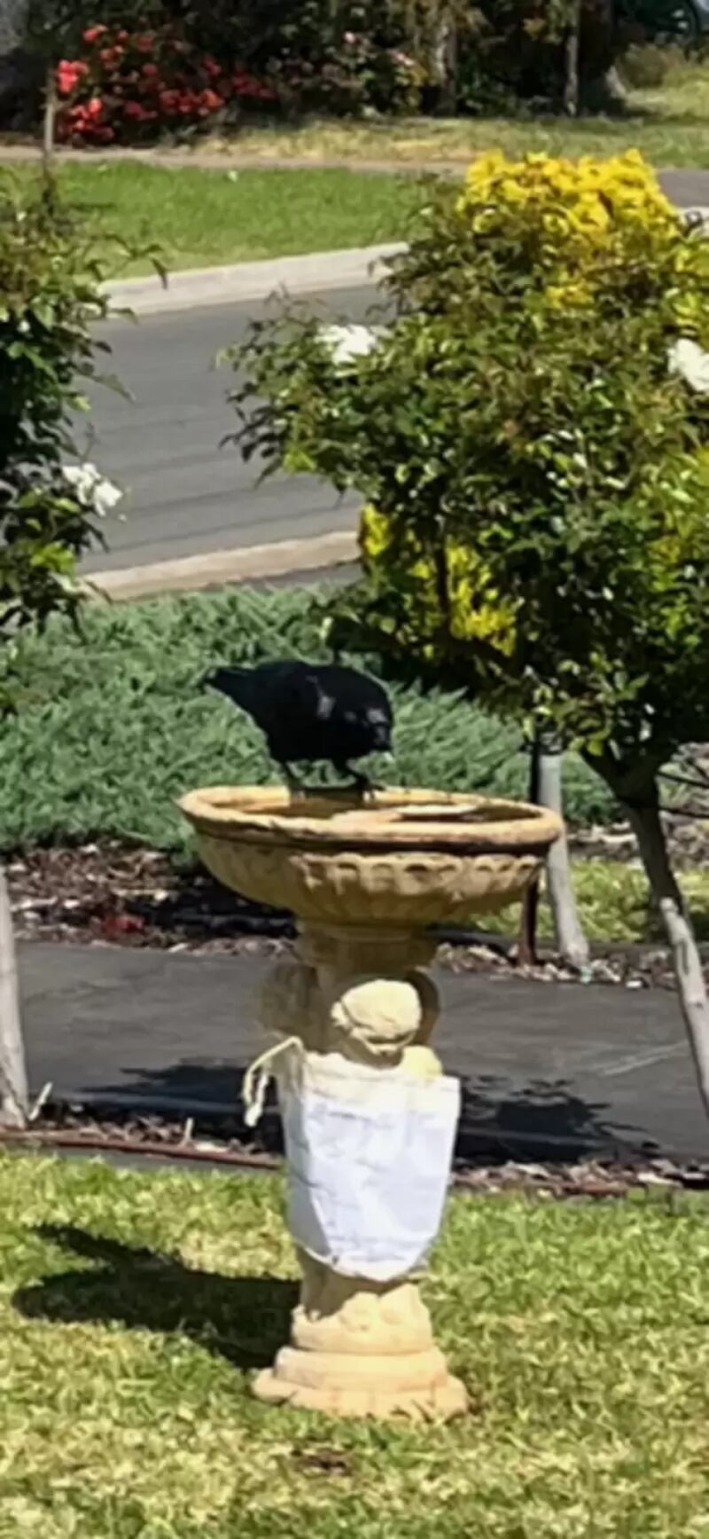 “Vi um corvo na beira do meu gramado com um pãozinho cheio na boca”, disse Dixon. “Ele olhou para mim, e fiquei muito quieta. Ele então continuou a se pavonear pelo gramado e voar até a beirada do banho de pássaros e depositou o pão na água. A ficha caiu que ele era o culpado. Fiquei chocada, meu rosto teria sido uma foto. Corri para dentro para contar ao meu marido, já que vinha reclamando dele há semanas sobre esse pão aleatório.”