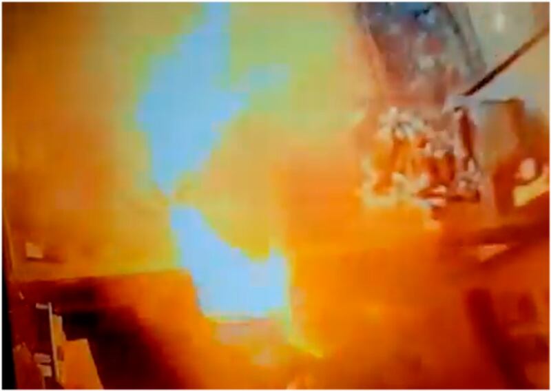 Neste exato momento o aparelho pega fogo e acaba produzindo uma grande explosão, tudo em alguns segundos.