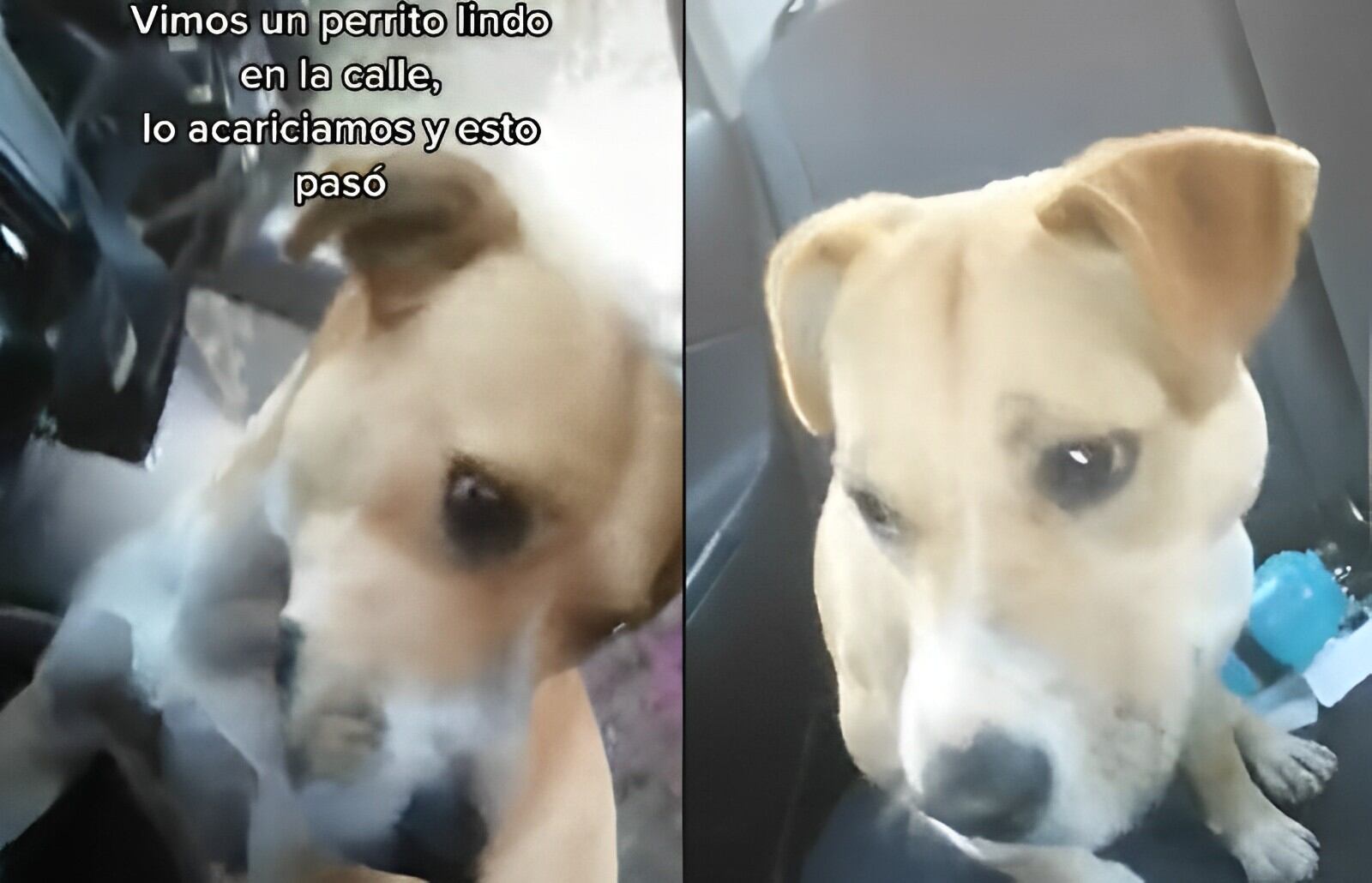 Em espanhol, o vídeo começa com a legenda: “Vimos um cachorrinho lindo na rua, fizemos carinho e isso aconteceu”.