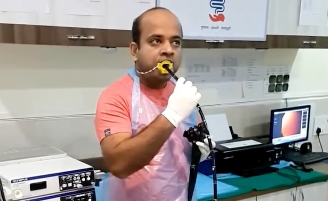“Esta foi provavelmente a primeira vez na Índia que uma endoscopia digestiva alta foi realizada por um gastroenterologista em si mesmo”, disse o Galaxy Hospital.