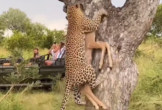 Sequência impressiona ao mostrar ‘força monstruosa’ de leopardo para subir árvore gigante com presa na boca; assista