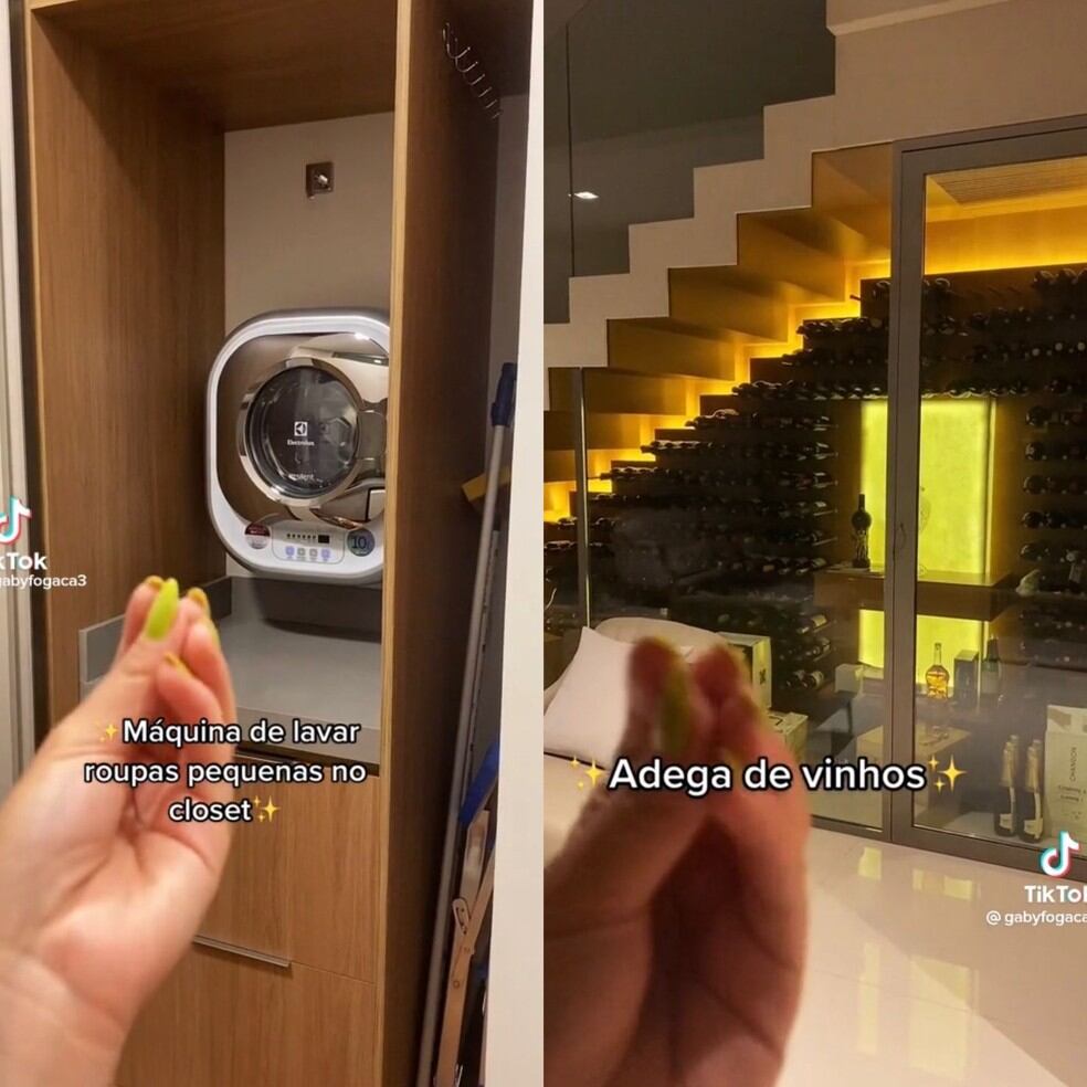 O lar do namorado da influencer conta com diversos itens de luxo com utilidades incomuns. É possível se deparar com elevador para roupas, uma máquina de lavar compacta dentro do closet, adega de vinhos e outros tipos de aquisições.