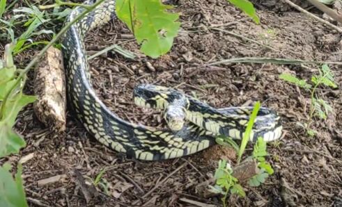 Veja o encontro com a caninana que impressionou ao se manter imóvel em posição de ataque: