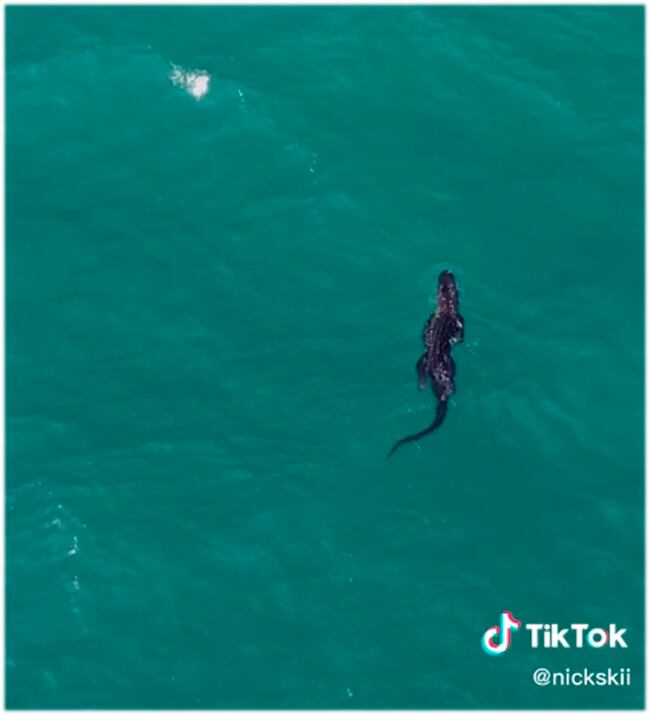 A rara cena foi filmada por uma fotógrafo que usava um drone para acompanhar a migração dos tubarões, e quase não acreditou quando avistou o jacaré americano, que é de uma espécie diferente do Australiano, em água salgada. “Incrivelmente grato por ter capturado este momento. Eu moro na costa há 18 anos e nunca vi um jacaré quebrar a enseada. Eu ouvi histórias de possíveis avistamentos, mas nenhum foi capturado em vídeo que eu saiba”, escreveu Nick Serrano nas redes sociais.