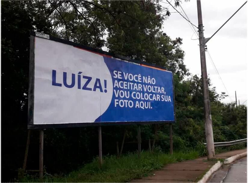 Em uma das placas, o autor tenta ser mais incisivo, o que muitas classificaram como “ameaçador”. “Luíza! Se você não aceitar voltar, vou colocar sua foto aqui”, diz a imagem.