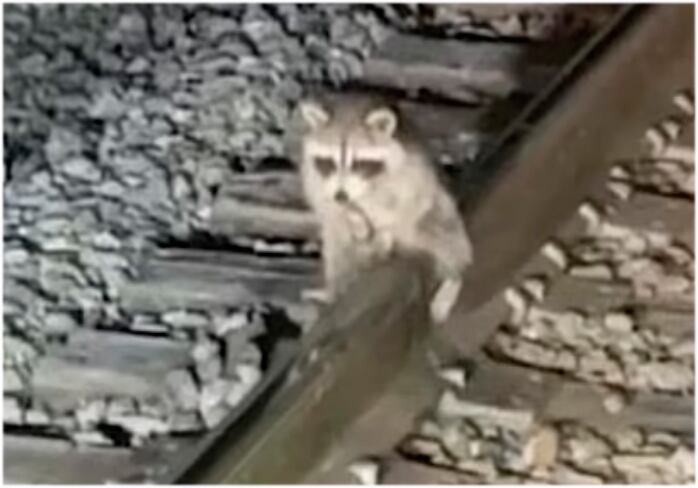 Os funcionários da ferrovia disseram acreditar que o pequeno guaxinim tenha sentado um pouco para descansar e a temperatura abaixo de zero tratou de ‘soldá-lo’ ao ferro. Se um trem passasse por ali naquele momento, ele não teria chances.