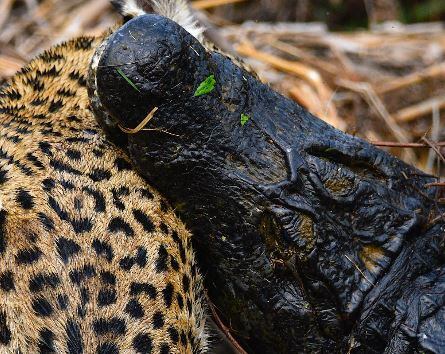 “Depois de alguns minutos seguindo ela, em meio à vegetação, ela pegou um jacaré e o arrastou para a mata fechada e começou a comer seu banquete. Depois ela foi buscar os filhotes e posteriormente mostrar a eles o almoço já servido”, detelhou.