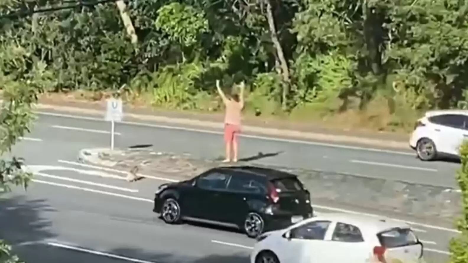 Thornton percebeu que o Coala descia de uma árvore próxima e parecia estar certo de que atravessaria a rodovia movimentada logo à frente. Ao se dar conta de que poderia acontecer uma tragédia ao animal, o homem se prontificou a evitá-la.