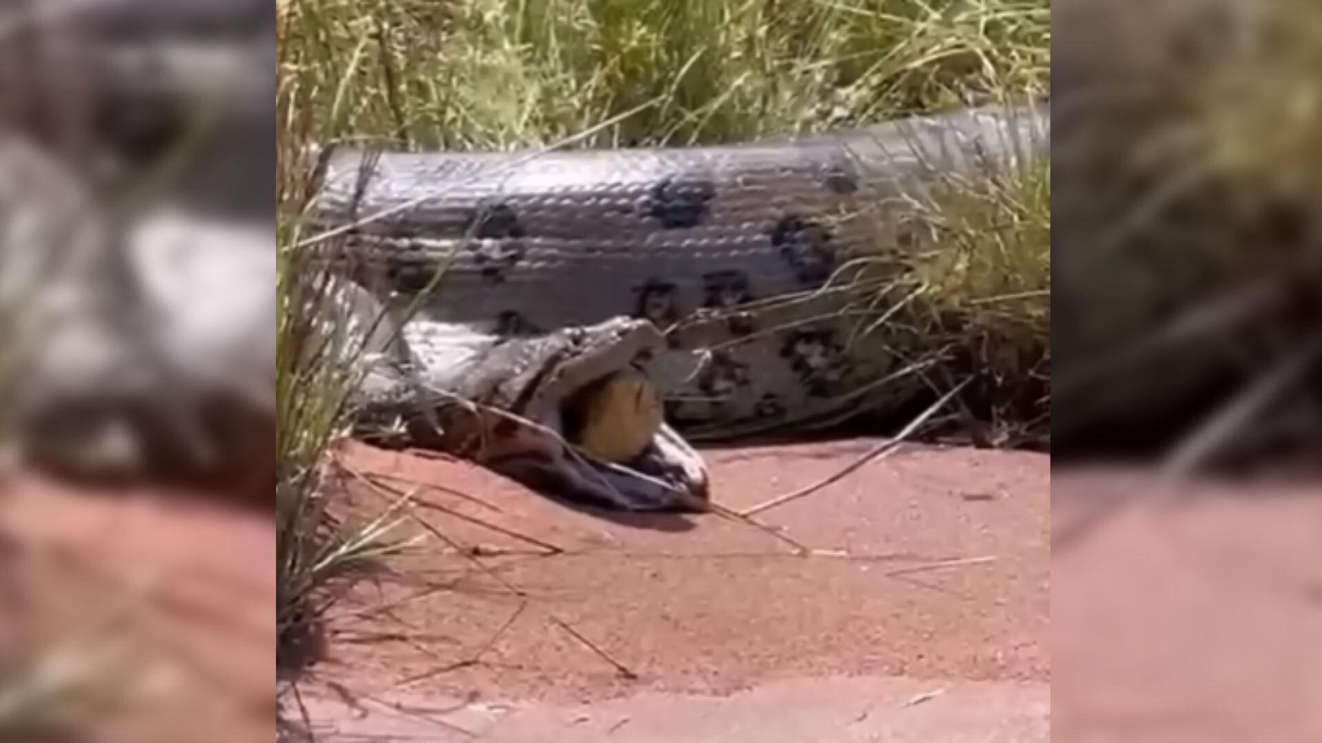 Confira as imagens impressionantes que mostram a batalha entre sucuris que terminou de forma inusitada a seguir:
