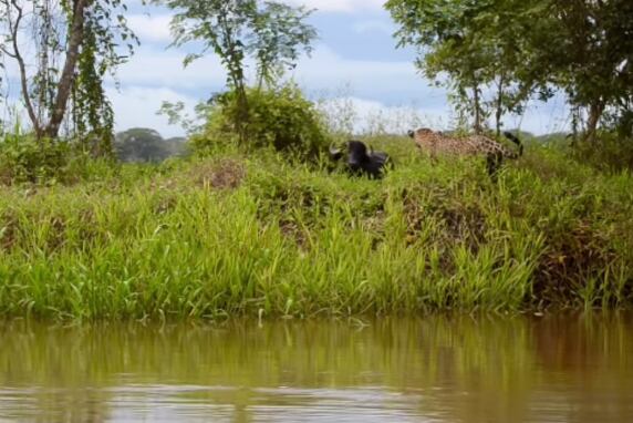 Vídeo surpreende ao flagrar reação de onça-pintada ao enfrentar búfalos no Pantanal; registro raro