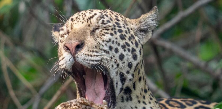 No flagra, captado na região, é possível ver o animal aparentemente tomado pela preguiça, em um bom bocejo.
