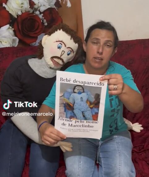 Meirivone Rocha Moraes fez algumas postagens em seu TikTok há alguns dias onde informava que ‘Marcelinho’, fruto do seu ‘relacionamento’ com Marcelo, um boneco de pano, havia sido sequestrado. Mas felizmente, a história acabou bem e após dias de angústia, a família finalmente pode estar reunida novamente.
