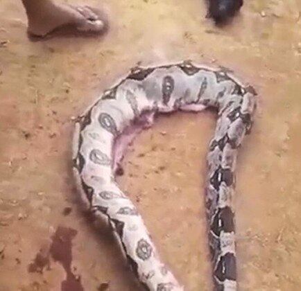 De acordo com o portal hora 7, uma jiboia de 6 metros foi descoberta de barriga cheia na área rural. Imediatamente, as pessoas desconfiaram que a refeição era parte do gado local, provavelmente uma cabra ou ovelha e decidiram matar e abrir a cobra.