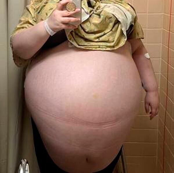 Um tumor tão grande que fazia com que uma jovem de 20 anos parecesse grávida de múltiplos filhos foi retirado da americana Allison Fisher e virou notícia de jornal na Flórida, Estados Unidos, segundo o jornal Daily Mail.