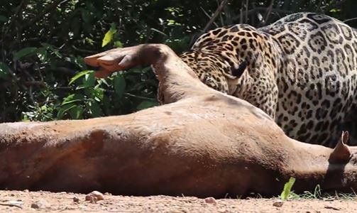 Um novo registro impacta ao mostrar a força de uma onça-pintada ao capturar uma presa gigante no Pantanal.