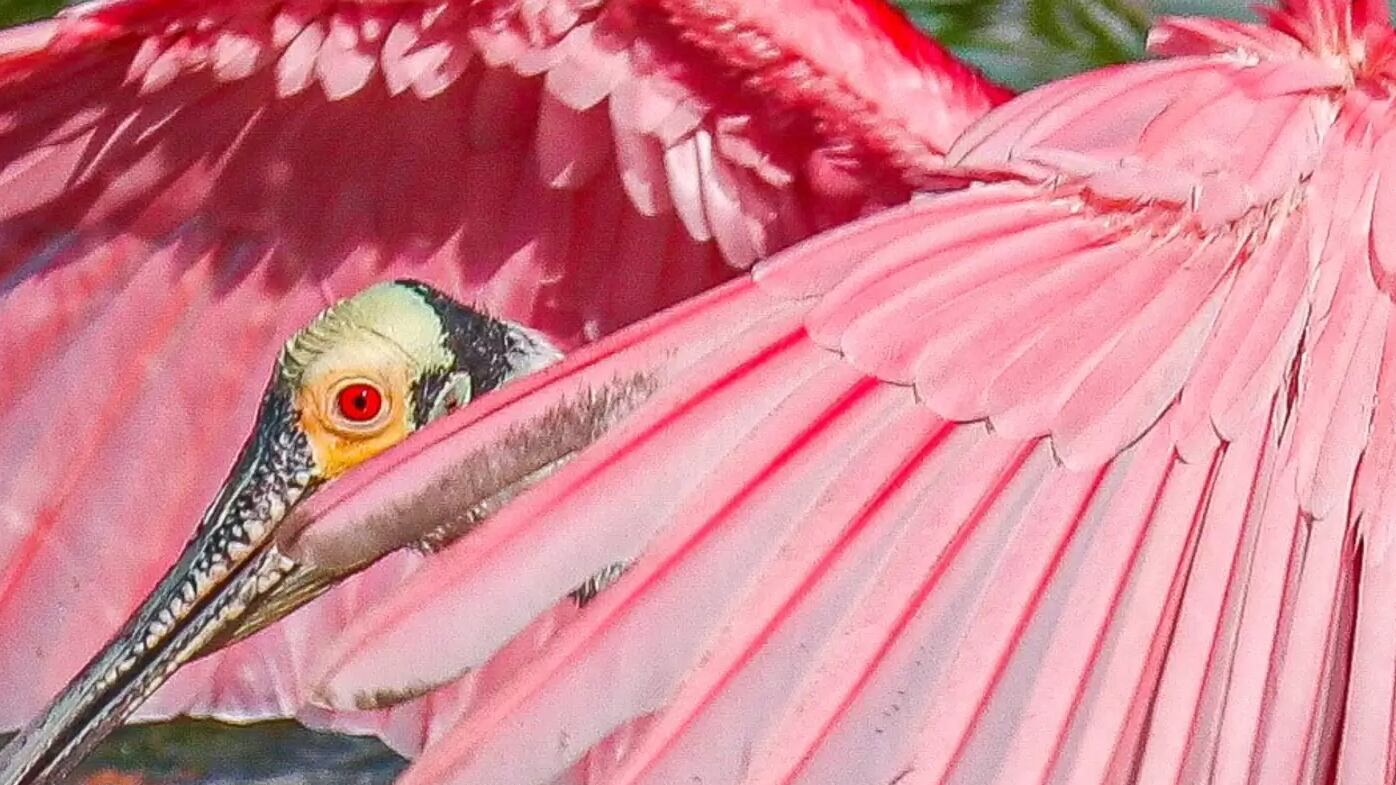 “Esta ave em particular foi uma das mais vibrantes que já vi”, disse Goldsmith. “Durante a época de reprodução, as penas do colhereiro róseo tornam-se um rosa mais profundo com toques de laranja e amarelo. Este pássaro estava em chamas com cores reprodutivas!”