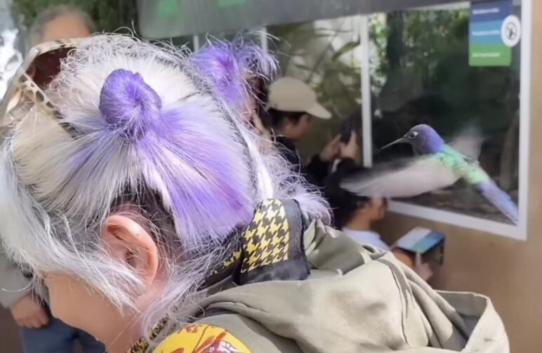 “Eu podia sentir que ele estava olhando para mim”, disse Sheena ao The Dodo. “E então ele se aproximou de mim.” A ave teria confundido seu cabelo colorido com uma das flores presentes no local.