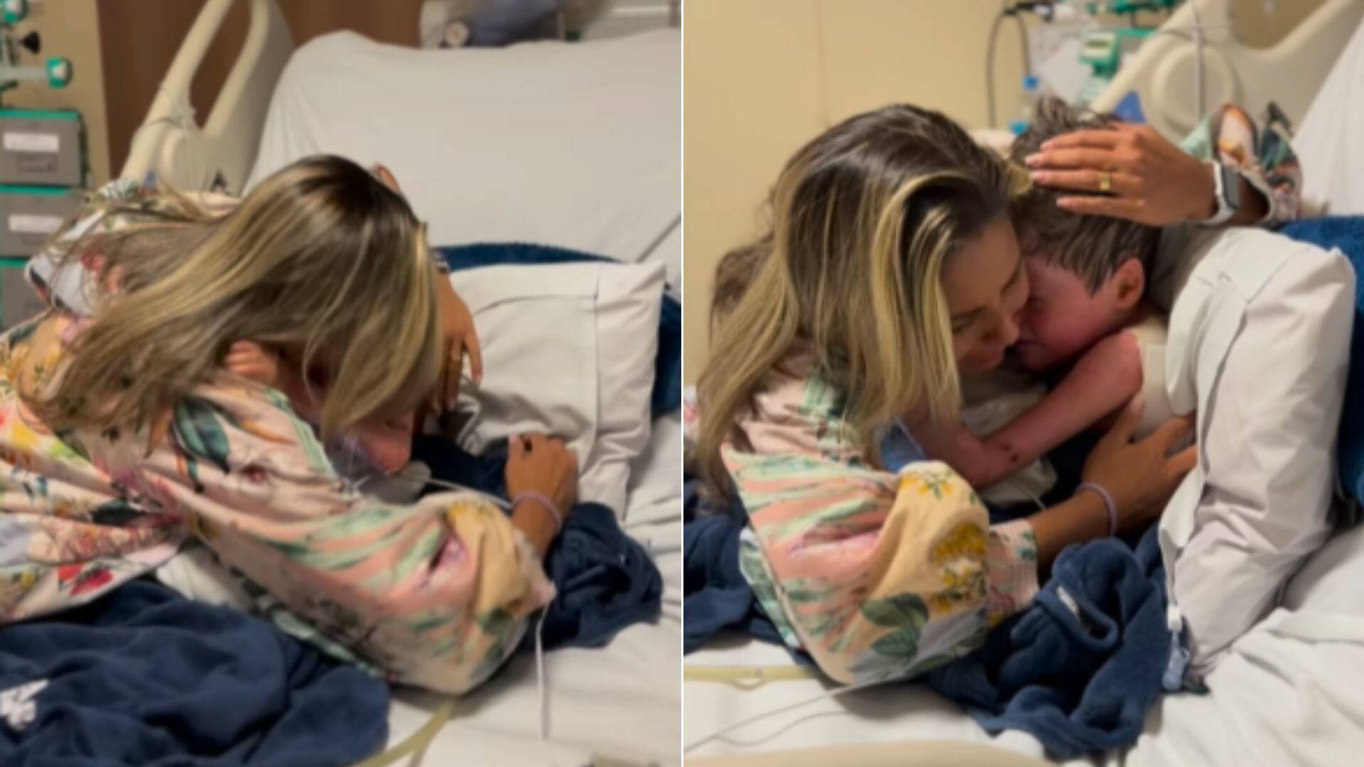 Na gravação, o menino tinha acabado de acordar e abraça a mãe emocionado. Ela também chora ao voltar a falar com o filho.