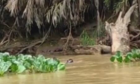 Com isso, é possível ver que o animal retrocede e decide não entrar na briga com o grupo de ariranhas.
