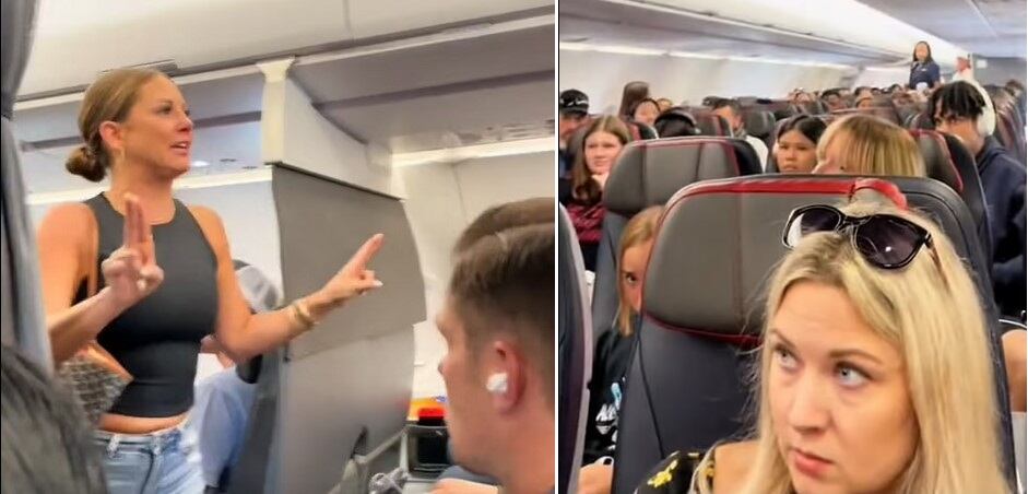 Ela continuou, alegando que o que estava vendo “não era real”. “Eu não dou a mínima, mas estou te dizendo agora mesmo. Aquela m* lá atrás não é real”, disse, apontando para a parte de trás do avião.